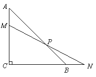 如图,已知等腰直角三角形ABC中,∠C=90º,AC=2,M是边AC上一点,过点M的直线交CB的延长线于点N,交边AB于点P,且AM=BN.