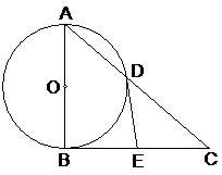 22.如图,△ABC中,∠ABC=900,以AB为直径作⊙O交AC于点D,如果E为BC的中点,求证DE是⊙O的切线.