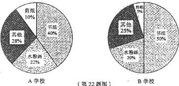 22(本题lO分)下图是A、B两所学校艺术节期间收到的各类艺术作品情况的统计图:
