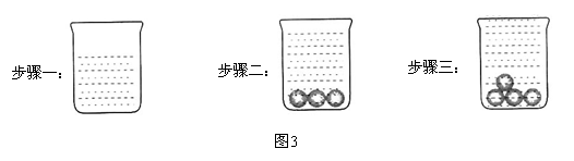步骤二,将三个相同的玻璃球放入水中,结果水没有满.