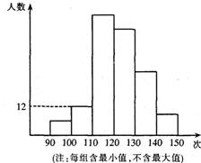(3)如果这次测试成绩的中位数是120次,那么这次测试中,成绩为120次的学生至少有多少人?