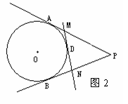 如图,直线PA、PB、MN分别与⊙O相切于点A、B、D,若PA=PB=8cm,则△PMN的周长是