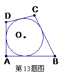 13.如图,一圆内切四边形ABCD,且AB=16,CD=10,