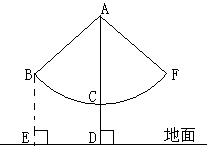 (本题8分)如图,秋千拉绳长AB为3米,静止时踩板离地面0.5米,某小朋友荡该秋千时,秋千在最高处时踩板离地面2米(左右对称),请计算该秋千所荡过的圆弧长(结果保留π)