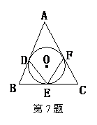 7.如图,△ABC的三边分别切⊙O于D,E,F,若∠A=50°,则∠DEF=( ).
