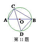 11.如图,在⊙O中,AB为直径,∠ACB的平分线交⊙O于D,则∠ABD= °.