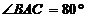 O是△ABC的外心,且∠ABC+∠ACB=100°,则∠BOC=( ).