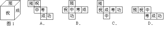 3.李明为好友制作一个(图1)正方体礼品盒,六面上各有一字,连起来就是“预祝中考成功”,其中“预”的对面是“中”,“成”的对面是“功”,则它的平面展开图可能是( )