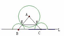 如图是某城市一个主题雕塑的平面示意图,它由置放于地面l上两个半径均为2米的半圆与半径为4米的⊙A构成,点B、C分别是两个半圆的圆心,⊙A分别与两个半圆相切于点E、F,BC长为8米。求EF的长。