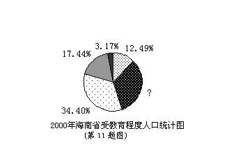 第五次全国人口普查资料显示,2000年海南省总人口为786.5万,下图中表示海南省2000年接受初中教育这一类别的数据丢失了,那么,结合图中的信息,可推知2000年海南省接受初中教育的人数为