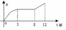某工厂12年来某产品总产量S与时间t(年)的函数关系如图所示,下列四种说法: