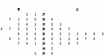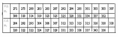 15、从甲、乙两品种的棉花中各抽测了25根棉花的纤维长度(单位:mm),结果如表中所示。