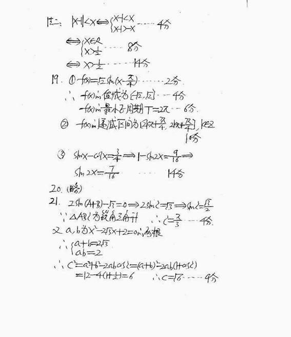 21.(本题14分)在锐角三角形中,边a、b是方程x2-2x+2=0的两根,角A、B满足: