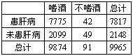 的把握认为患肝病与嗜酒有关;③认为患肝病与嗜酒有关的出错的可能为