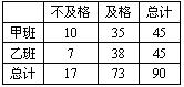 有甲、乙两个班,进行数学考试,按学生考试及格与不及格统计成绩后,得到如下的列联表