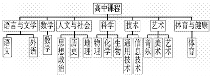 12.在高中阶段,在各个领域我们学习许多知识.在语言与文学领域,学习语文和外语;在数学领域学习数学;在人文与社会领域,学习思想政治、历史和地理;在科学领域,学习物理、化学和生物;在技术领域,学习通用技术和信息技术;在艺术领域学习音乐、美术和艺术;在体育与健康领域,学习体育等.试设计一个学习知识结构图.