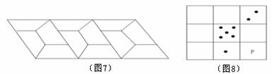 我国古代的“河图”是由3×3的方格构成,每个方格内均有数目(个数为1-9)不同的点图,每一行,每一列以及每一条对角线上的三个点图的点数之和均相等,则图8中已给出了“河图”的部分点图,请你推算出