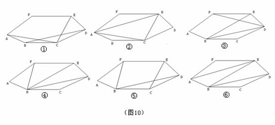(如图9所示),它由6条钢管绞接而成.在生活中,要保持该钢架稳定且形状不变,必须在接点处增加一些钢管绞接.通过实践至少再用三根钢管.请同学们想一想,下面固定方法中(如图10所示)能保持该六边形钢架稳定且形状不变的有