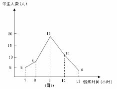 6. 教育部门发出在中小学开展“阳光体育活动”之后.某学校调查了初三某班45名同学一周参加体育锻炼的情况,并把它绘制成折线统计图(如图3),那么关于该班45名同学一周参加体育锻炼的时间说法错误的是( )