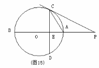 21.(10分)如图15,AB是⊙O的直径,点P在BA的延长线上,弦CD⊥AB,垂足为E,且![]()