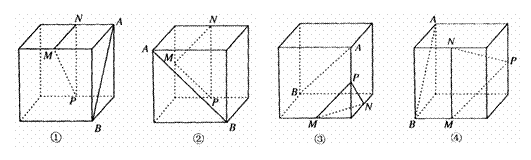 12.下面四个正方体图形中,A、B为正方体的两个顶点,M、N、P分别为其所在棱的中点,能得出