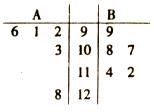 8.A,B两名同学在5次数学考试中的成绩统计如下面的茎叶图所示,若A,B两人的平均成绩分别是