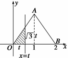 的等边三角形。设直线x=t(0≤t≤2)截这个三角形可得位于此