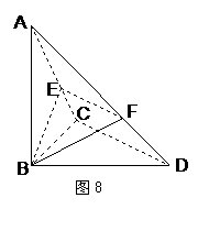 如图8,已知△BCD中,∠BCD=90°,BC=CD=1,AB⊥平面BCD,∠ADB=60°,E、F分别是AC、AD上的动点,且![]()