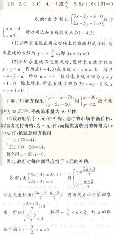 的交点,且在两坐标轴上的截距相等的直线方程。