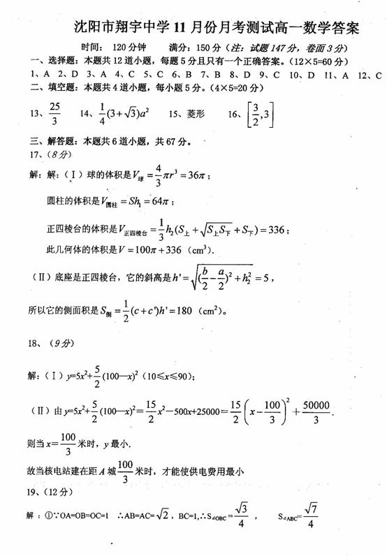(I)求这个奖杯的体积;