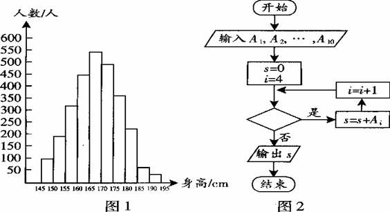 )在[150,155)内的学生人数).图2是统计图l中身高在一定范围内学生人数的一个算法流程图.现要统计身高在160-185