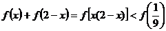 =f[x(2/3-x)]≤f(1/3)+ f(1/3)= f(1/9)