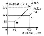 电信局为了配合客户的不同需要,设有A、B两种优惠方案. 这两种方案的应付电话费(元)与通话时间(分钟)之间的关系如图所示(实线部分)(注:图中MN∥CD).试问:.w.^w.k.s.5*