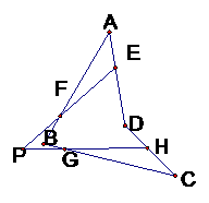 5、在空间四边形各边AD、AB、BC、CD上分别取E、F、G、H四点,如果EF、GH交于一点P,则点P( )