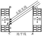 (2) 当α=30°时,甲楼楼顶B点的影子落在乙楼的第几层?若α每小时增加15°,从此时起几小时后甲楼的影子刚好不影响乙楼采光?(=1.73)