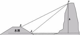 倾斜角为15°的坝面向上走30米到水坝的顶部B测得对面山顶P的仰角为30°,