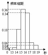方法得到的频率分布直方图.设成绩大于等于15秒且