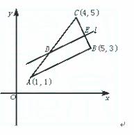 20.已知△ABC的三项点坐标分别为A(1,1),B(5,3),C(4,5),直线l∥AB,交AC于D,交BC于E,且直线平分△ABC的面积,求D点坐标.