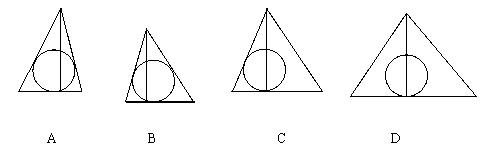 11.正三棱锥内有一个内切球,经过棱锥的一条侧棱和高作截面,正确的图是 ( )