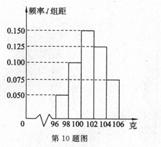 则样本中净重大于或等于98克并且小于104克的产品的个数是