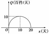 而这20天相应的销售量Q(百件/天)与x对应的点(x,Q)在如图所示的半圆上.