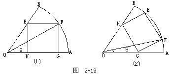 如图2-19 (2),设∠FOA=θ,则EF=2Rsin(30°-θ),在△OFG中,∠OGF=150°