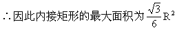 [例19] 有一块扇形铁板,半径为R,圆心角为60°,从这个扇形中切割下一个内接矩形,即矩形的各个顶点都在扇形的半径或弧上,求这个内接矩形的最大面积.
