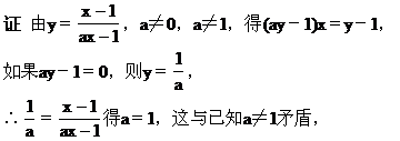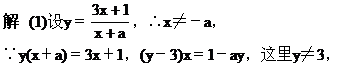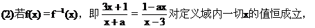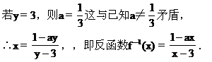 或解 由f(x)=f-1(x),那么函数f(x)与f-1(x)的定义域和值域相同,定义域是{x|x≠a,x∈R},值域y∈{y|y≠3,y∈R},∴-a=3即a=-3.