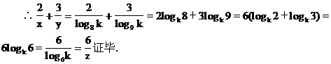 证 设8x=9y=6z=k(k>0,且k≠1)则x=log8k,y=log9k,z=log6k,