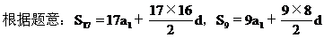 由题意S9=S17得a10+a11+a12+…+a17=0