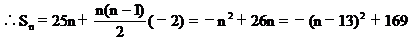 即前13项和最大,由等差数列的前n项和公式可求得S13=169.