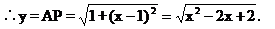 (2)当点P在BC边上,即1<x≤2时,AB=1,AB+BP=x,BP=x-1,根据勾股定理,得AP2=AB2+BP2