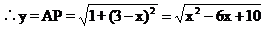 (3)当点P在DC边上,即2<x≤3时,AD=1,DP=3-x.根据勾股定理,得AP2=AD2+DP2.