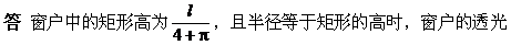 [例3] 要在墙上开一个上部为半圆,下部为矩形的窗户(如图2.9-2所示),在窗框为定长l的条件下,要使窗户透光面积最大,窗户应具有怎样的尺寸?
